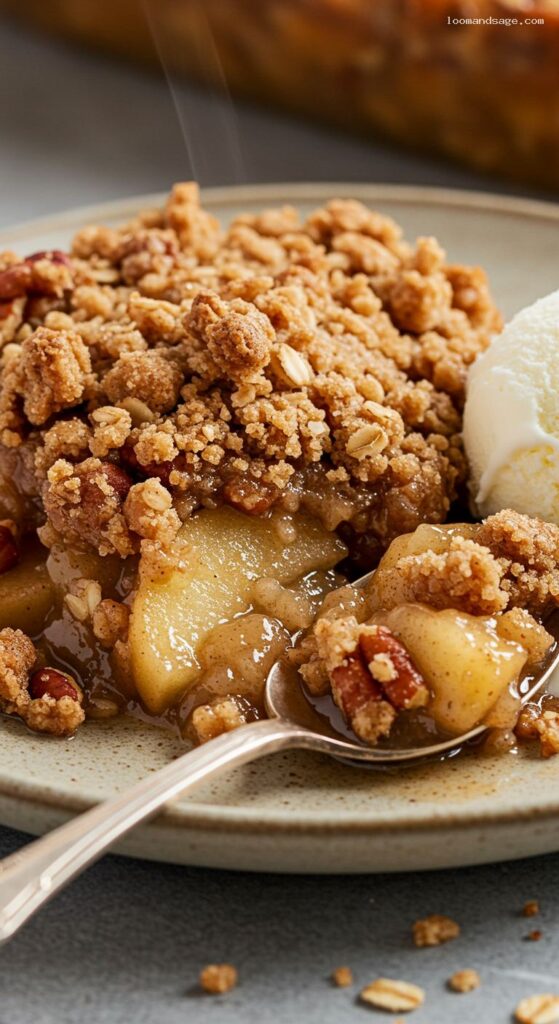 Scoop into bowls and serve warm. Vanilla ice cream or lightly sweetened whipped cream is classic. If you want extra crunch, return the crisp to the oven and broil on the middle rack for 1 to 2 minutes, watching closely.