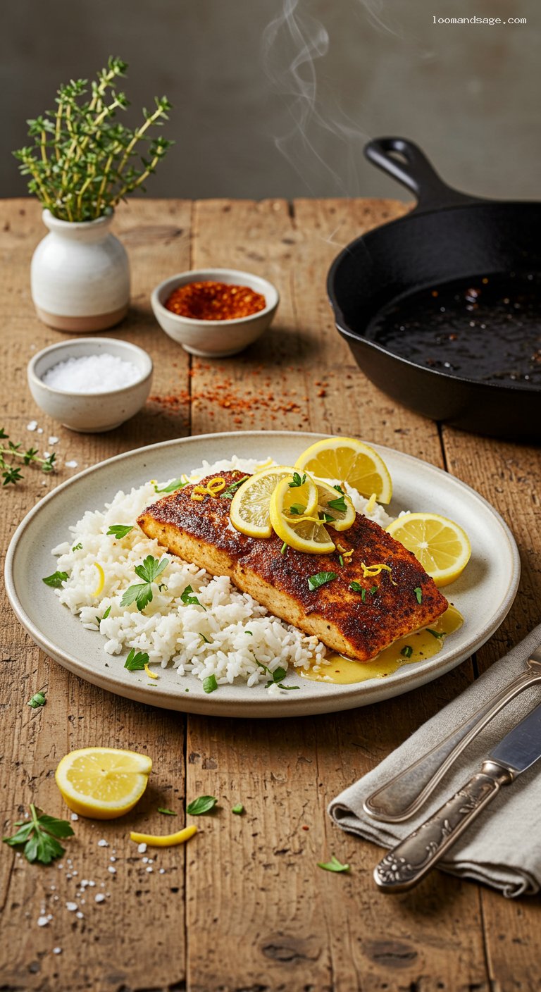 Blackened Redfish with Cajun Spice and Lemon Rice