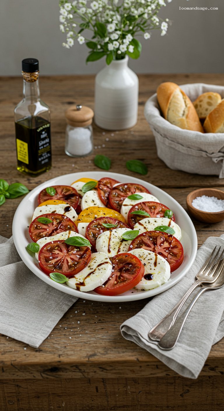 - Peach-Basil Caprese: Add 2 ripe peaches, thinly sliced, for a sweet summer spin. Finish with a pinch of flaky salt to balance.