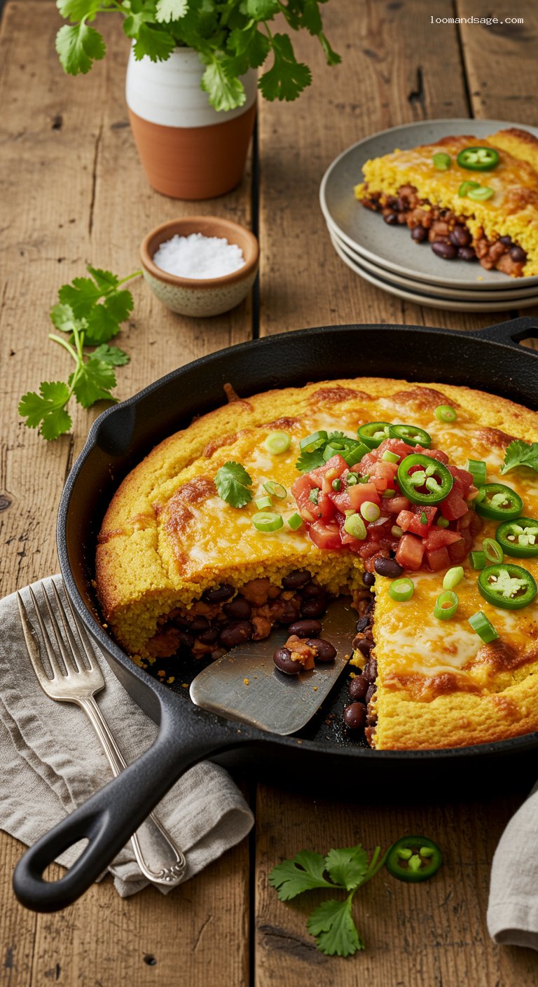 - Big flavor, small budget: pantry beans, jarred salsa, and a simple cornbread batter.