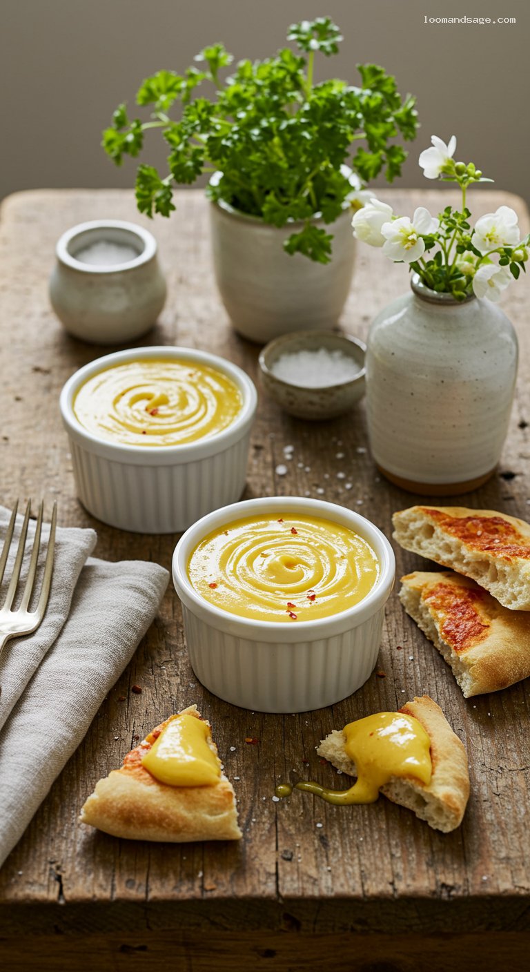 Serve at 120–140°F in small ramekins or dipping cups. If holding for more than 15 minutes, place the ramekins in a warm water bath (about 130°F) and stir occasionally. If the sauce separates, re-emulsify with a quick blend and 1 teaspoon hot water.