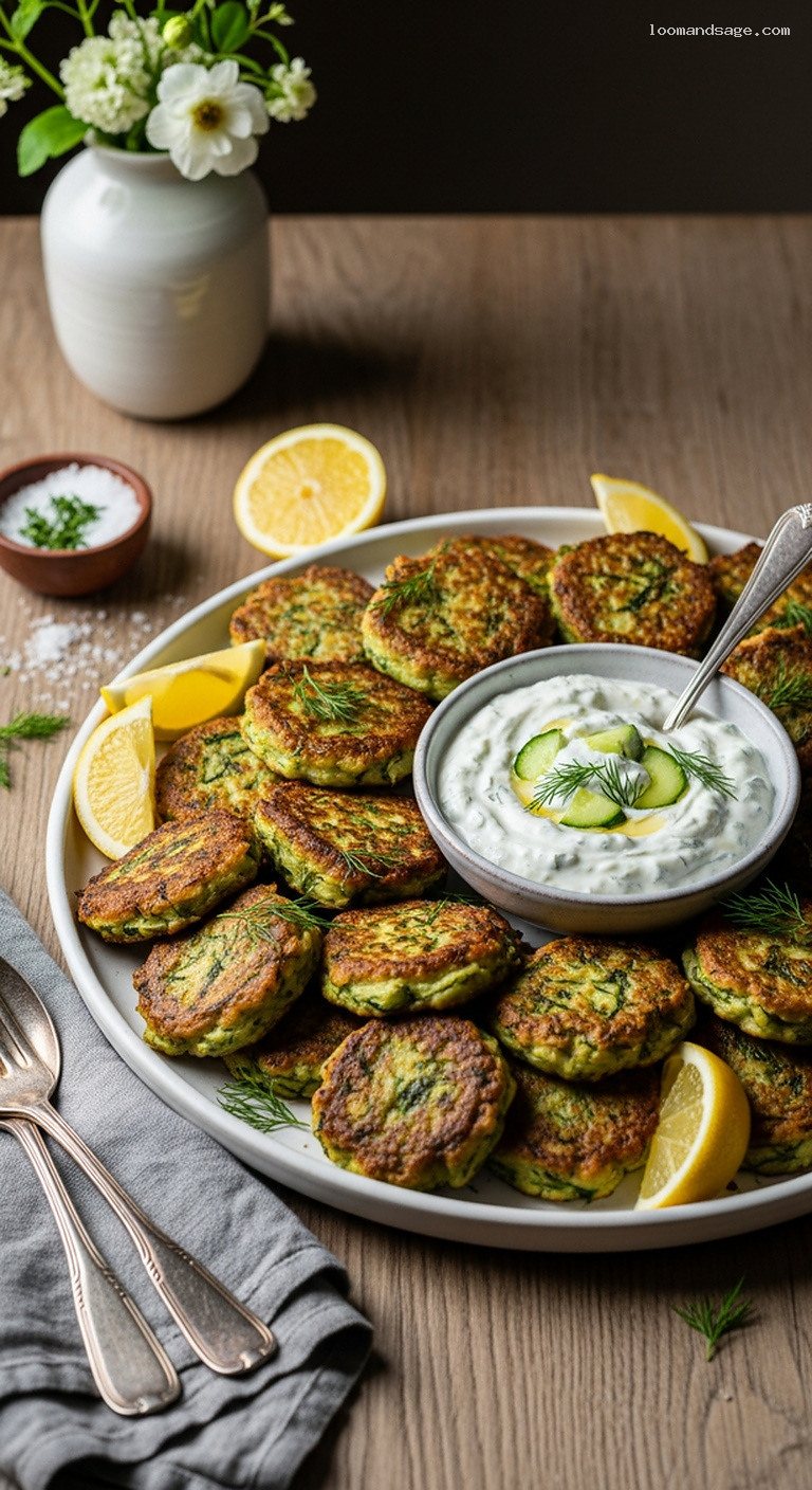 Serve right away while the fritters are still crisp on the outside and soft within. Encourage diners to squeeze fresh lemon over each fritter and dip generously into the tzatziki for the full Greek taverna experience.