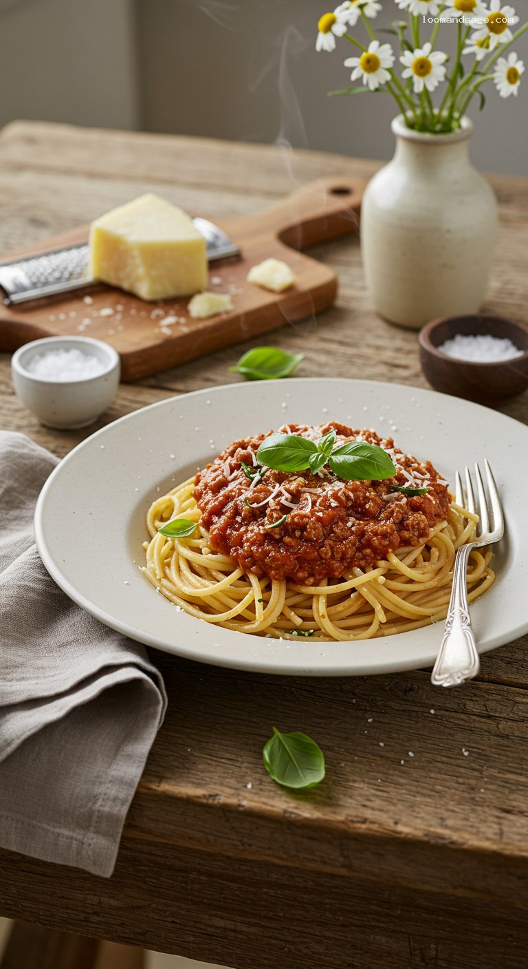 Gluten-Free Spaghetti Bolognese with Parmesan and Basil