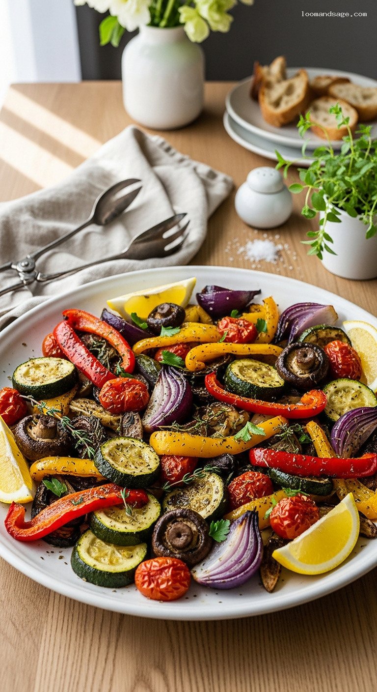 - Spicy version: Add 1/2–1 tsp red pepper flakes or a sliced fresh chili to the garlic-herb oil for a gentle heat that complements the sweetness of the roasted vegetables.