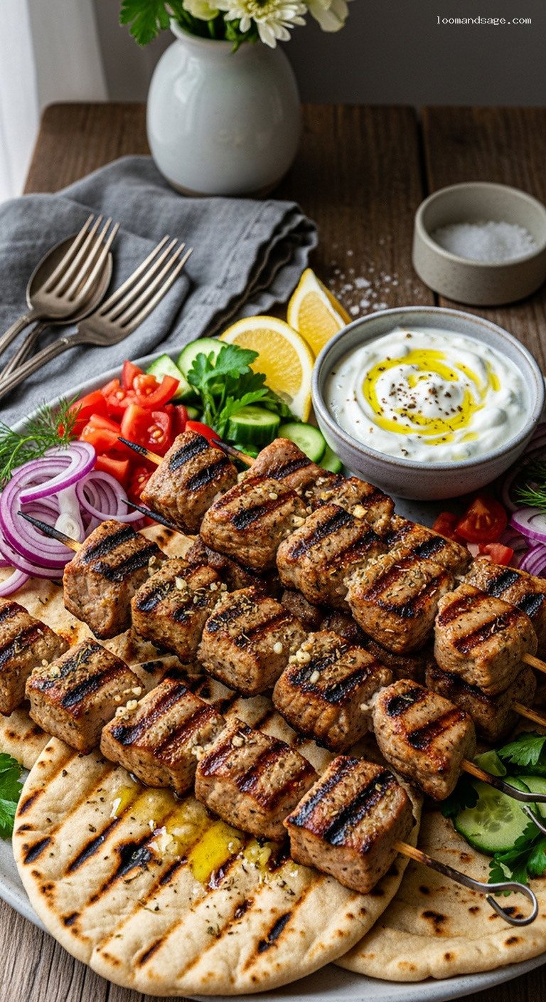 Grilled Pork Souvlaki With Lemon Garlic Yogurt Marinade – Closeup
