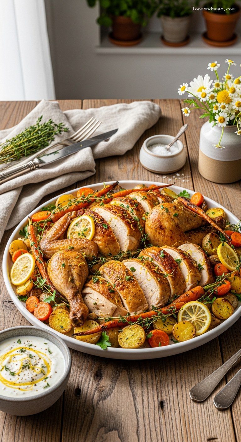 - Balanced flavors: bright lemon and thyme meet savory pan drippings, finished with a tangy, creamy yogurt-garlic sauce.