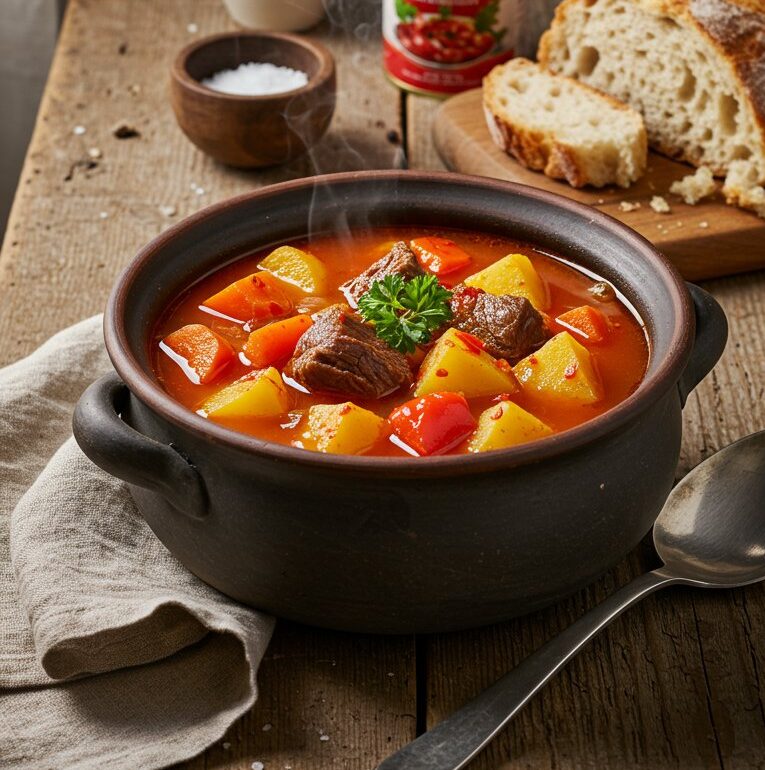 Hungarian Goulash Soup with Beef and Paprika