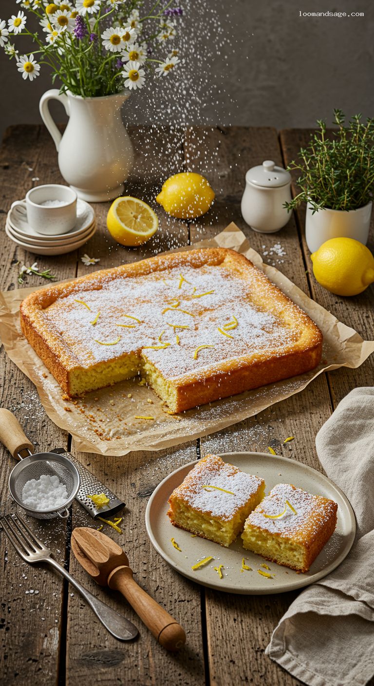 Cool the pan on a rack for 45–60 minutes. For the neatest slices, chill an additional 30 minutes. Lift the slab out with the parchment, dust generously with confectioners’ sugar, and sprinkle with a little fresh zest.