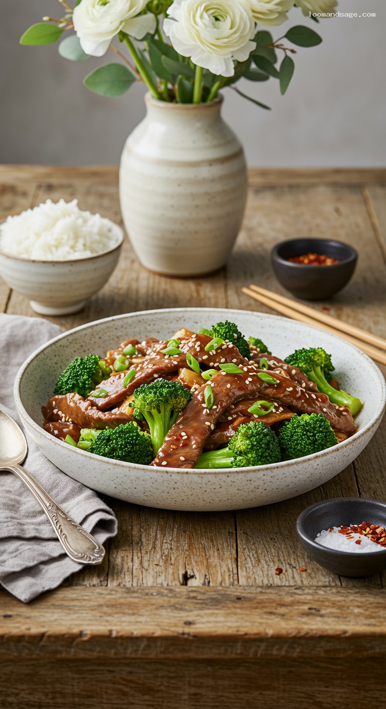 - Chicken and Broccoli: Swap beef for 1 lb (450 g) thin-sliced chicken thigh; cook through 3–4 minutes total.