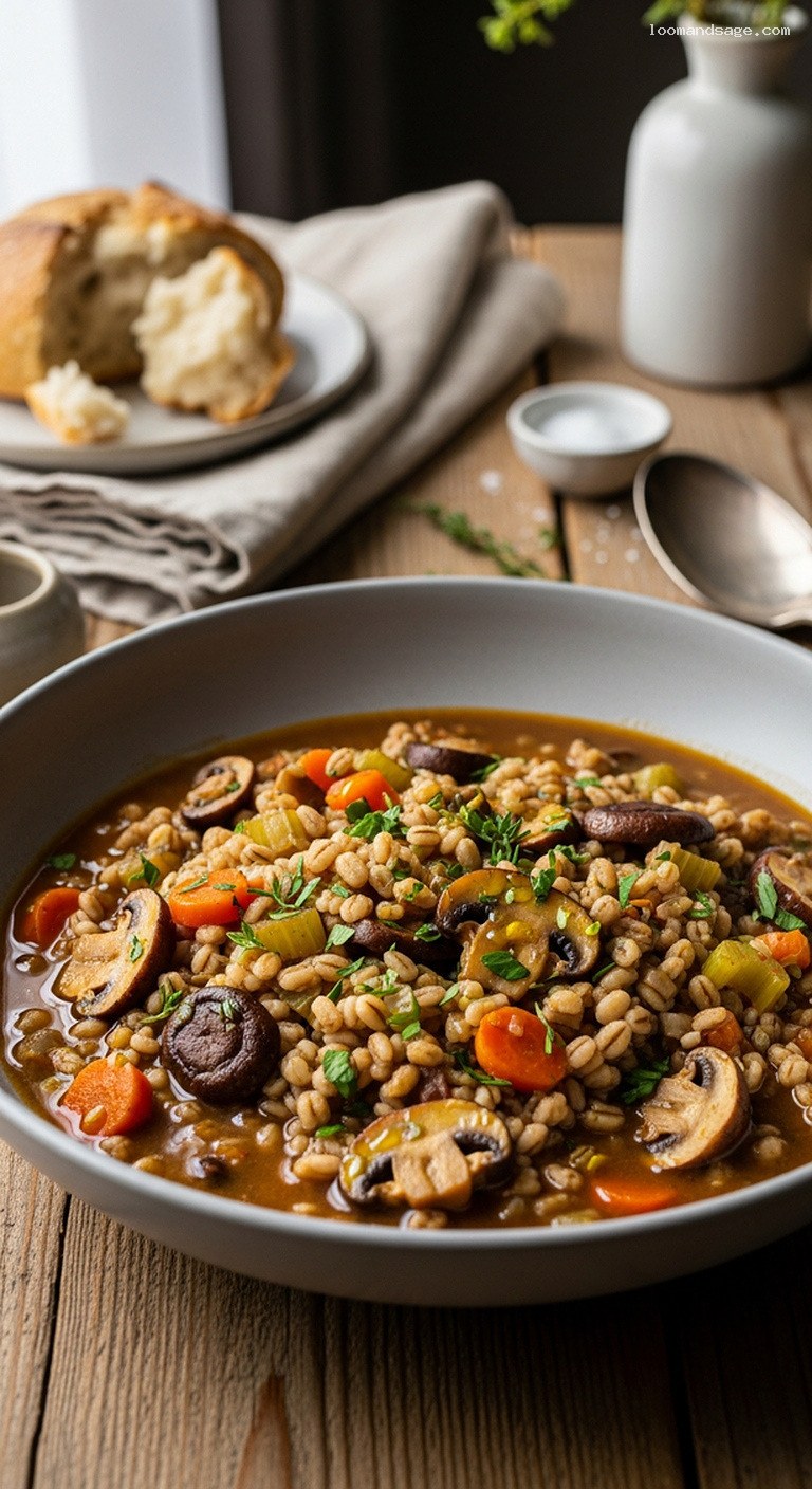 - Slow cooker method: Sauté the onions, carrots, celery, and mushrooms with oil/butter and aromatics in a pan as directed, then transfer everything to a slow cooker with the barley, tomato paste, seasonings, and broth. Cook on LOW for 6–7 hours or HIGH for 3–4 hours, then finish with vinegar or lemon, parsley, and optional thickener as needed.