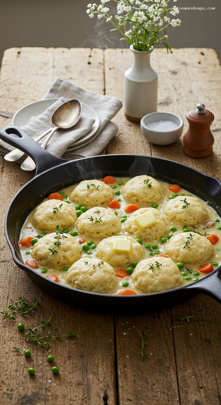 - 7. Uncover 3–5 minutes. Dot dumplings with butter pats, splash in lemon, garnish parsley, serve hot.