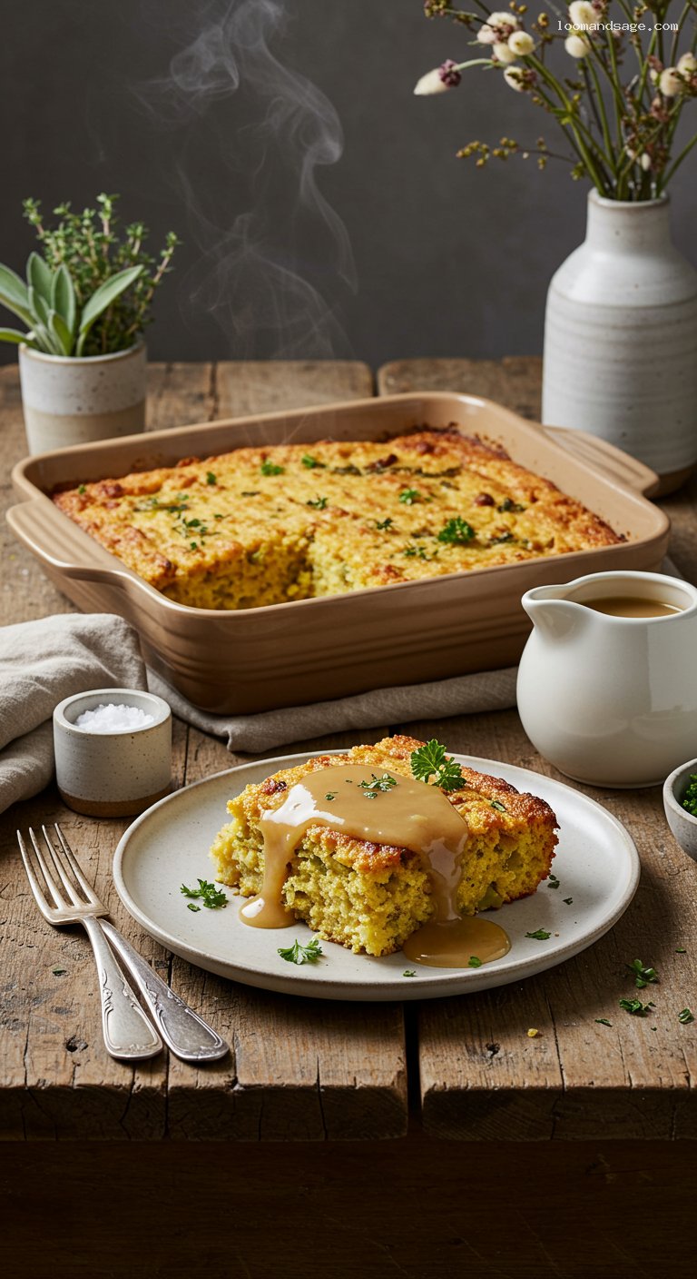 - Classic Southern flavor: tender cornbread crumbs, savory herbs, and rich turkey drippings.