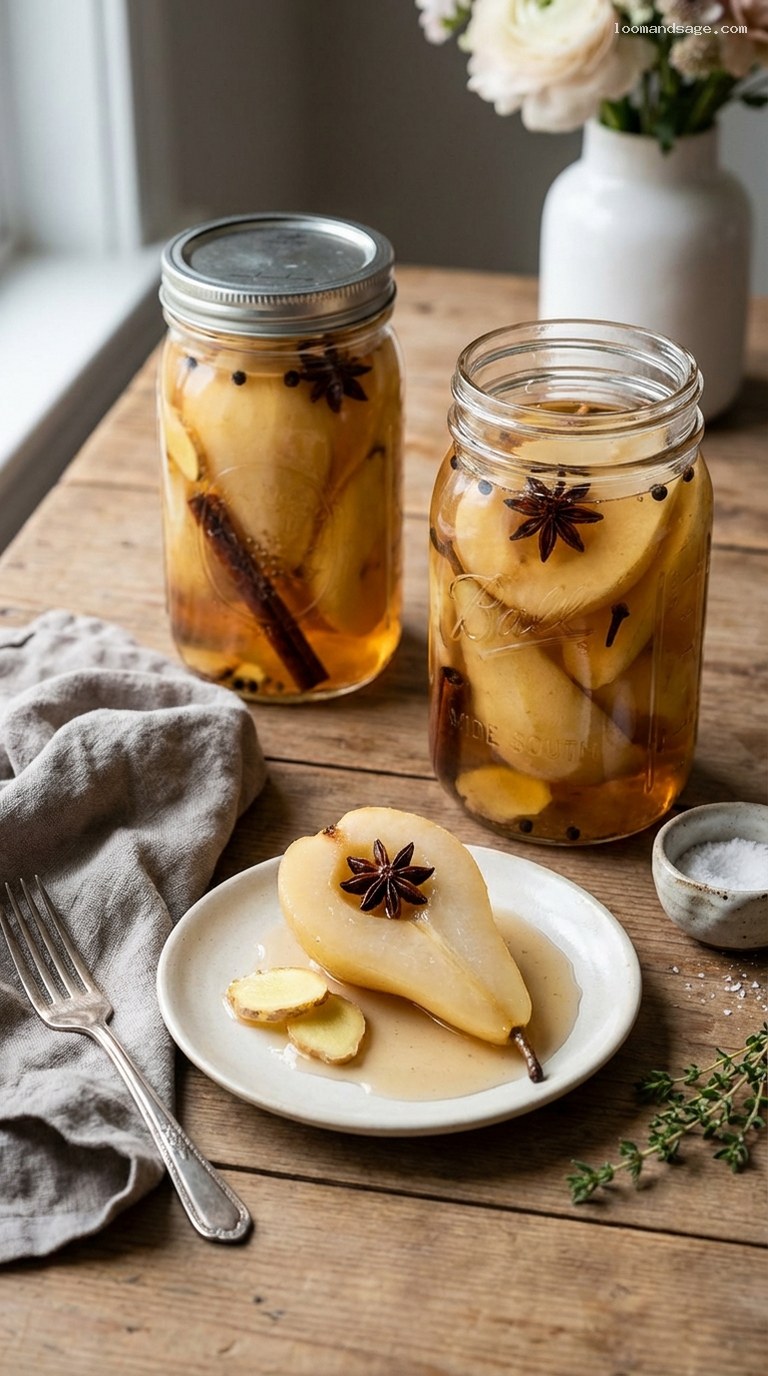 Spiced Pickled Pears with Ginger and Star Anise – Closeup