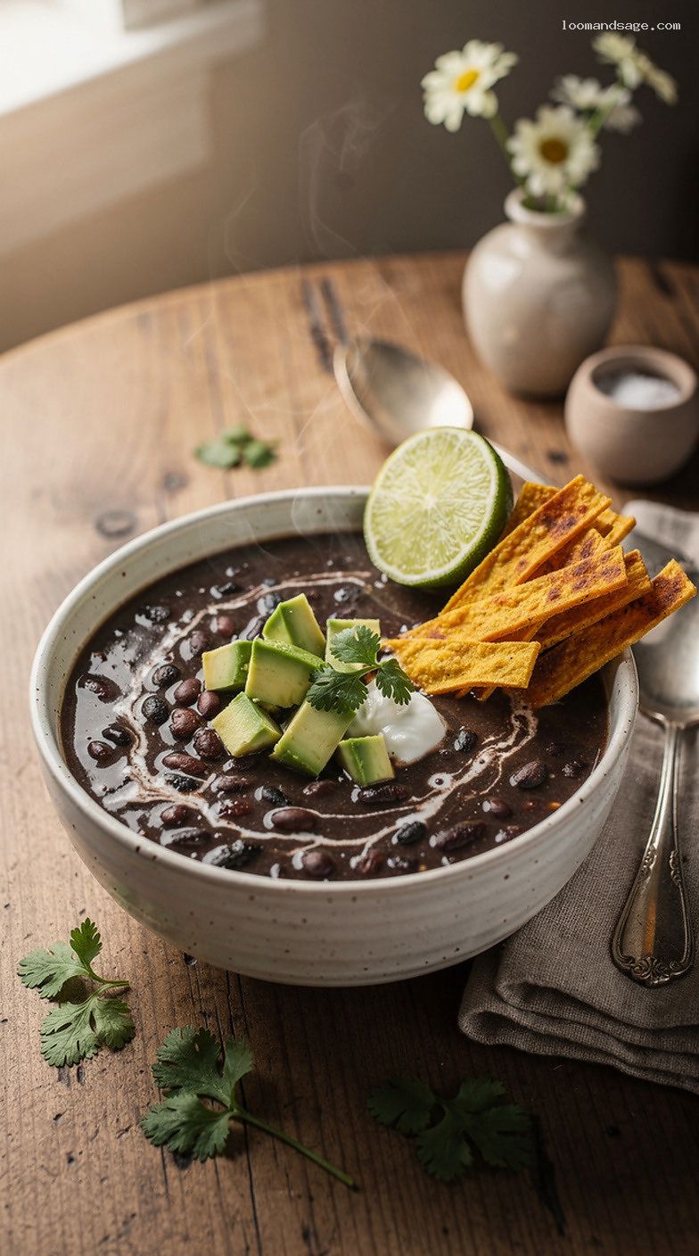 - 7) Serve hot topped with avocado, cilantro, lime wedges, and crunchy tortilla strips.