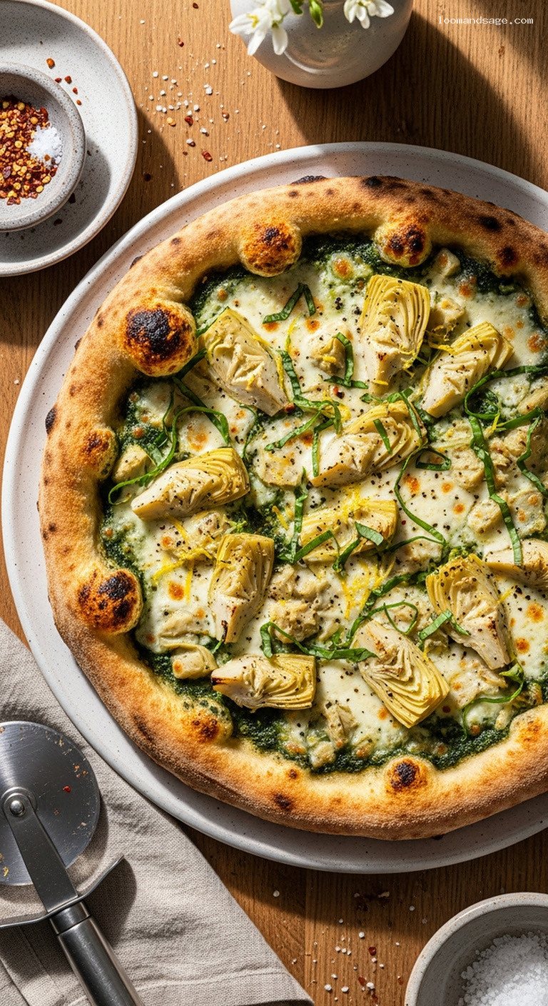 - Bright, fresh flavors: spinach-basil pesto and lemon zest keep this pizza light yet satisfying.
