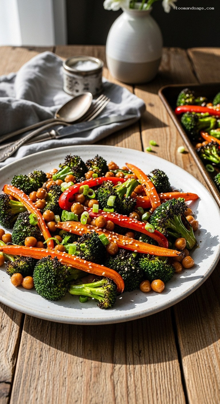• 4. Roast for 15 minutes, then toss and roast 8–10 minutes more, until chickpeas are golden and broccoli edges are lightly charred.