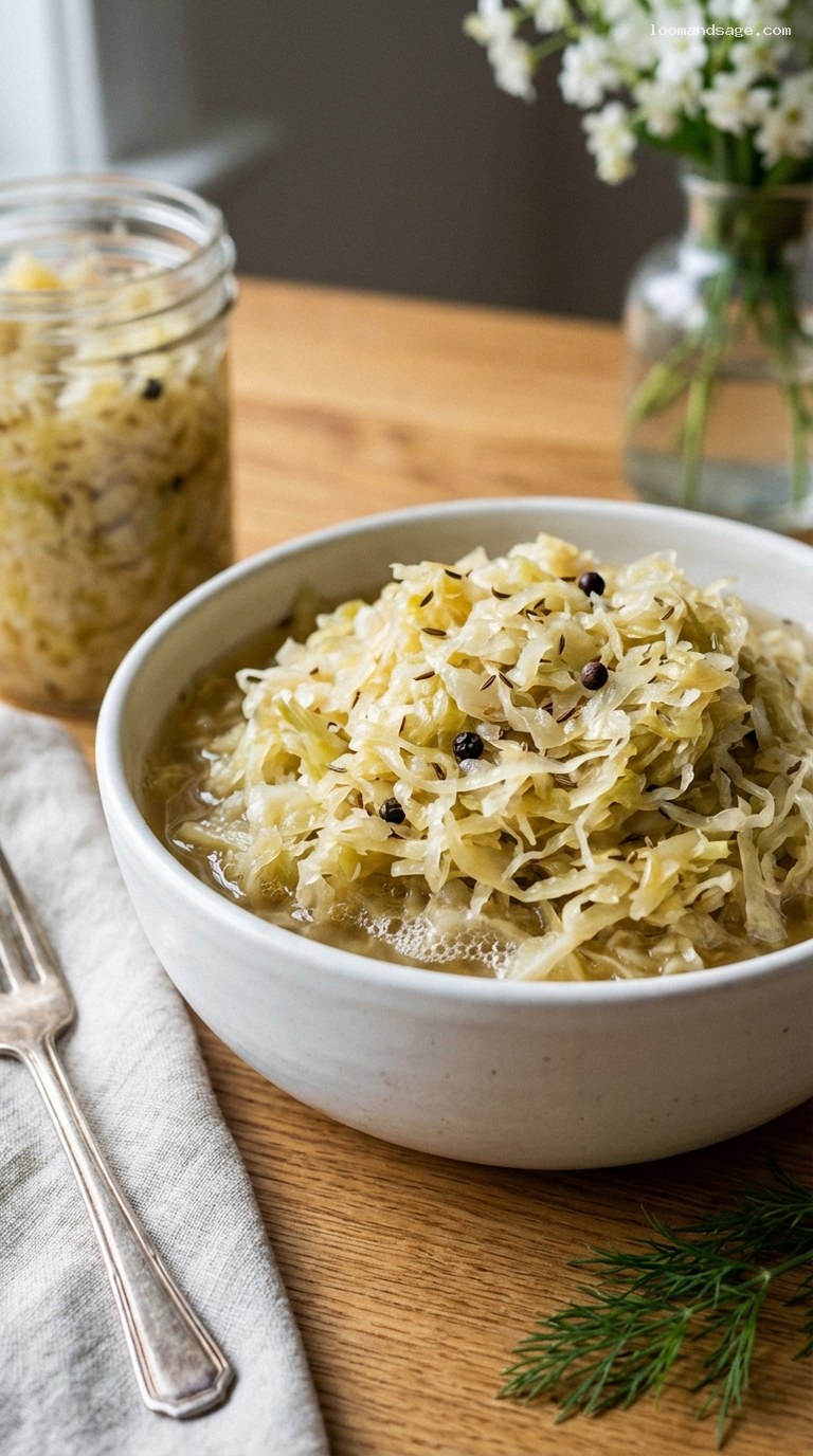 - Classic Caraway Sauerkraut: Add 1–2 tsp caraway seeds during Step 3. This is a very traditional Central European flavor that pairs beautifully with sausages and rye bread.