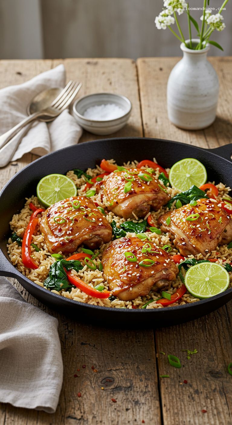 - Pantry: Boneless skinless chicken thighs (1.5 lb), jasmine rice, unsweetened coconut milk, low-sodium chicken broth, soy sauce, honey, fish sauce (optional), red pepper flakes, ground coriander (optional), neutral oil, kosher salt, black pepper
